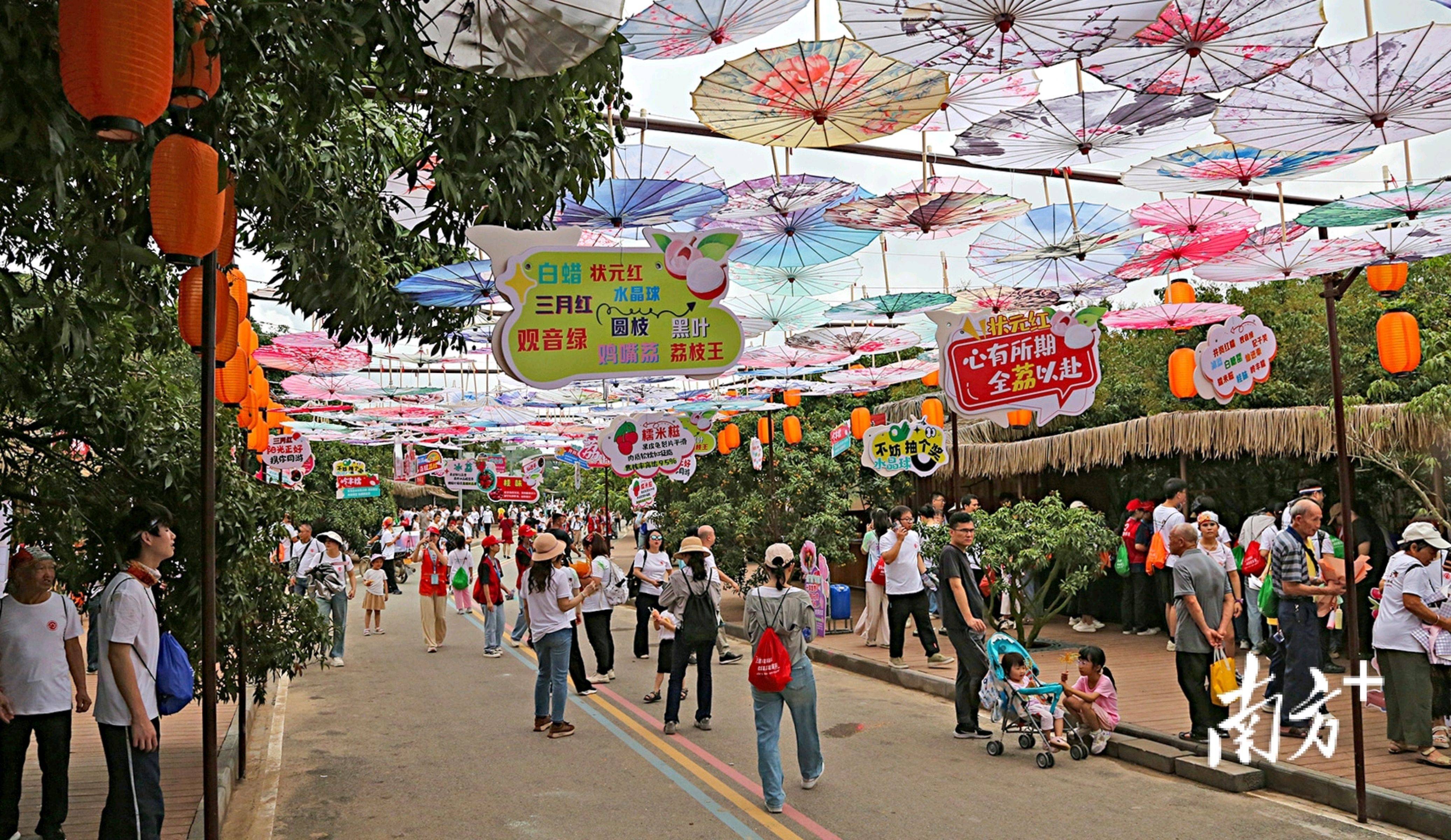 荔枝季期间,旅行社组团采摘游客超3000人,游客们在古荔园内体验采摘乐趣、品尝新鲜荔枝、购买荔枝深加工产品,让一个荔枝成为带动乡村增收的“致富果”。“跟着赛事去旅游”等消费体验活动,让游客在观看乡村赛事的同时,走进田间地头、特色村落,感受乡村风貌、购买农特产品,实现“赛事搭台、旅游唱戏、消费增收”的良性循环。